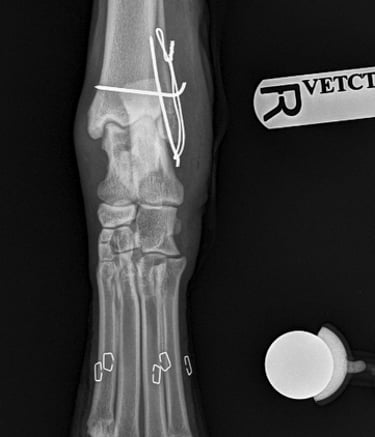 Buddy recovered well and in 4 weeks post op Xrays we could see that the fracture was healing well (Fig 5 and 6).