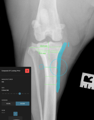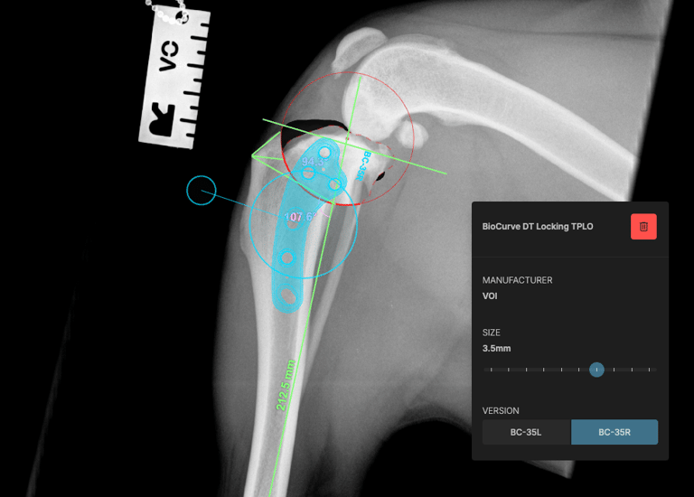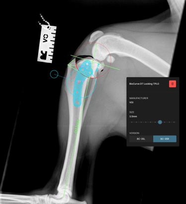 The surgical plan was developed using specialized veterinary orthopedic planning software, which allowed for precise measurements and implant selection, ensuring optimal execution of the surgical procedure (Figs. 3 and 4).